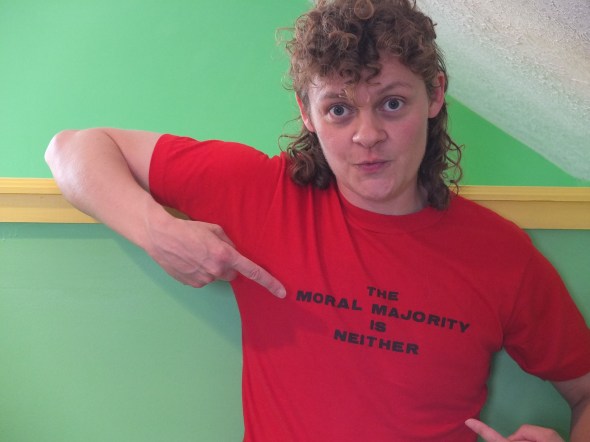 I’m sure there’s more to the story, but according to wikipedia, the Moral Majority was a political organization started by Jerry Fallwell (The New Christian Right), mostly active in the 1980s. Critics started stating that “The Moral Majority is neither,” meaning the organization was neither moral nor a majority, and the slogan spread to bumper stickers, and other “swag” items.