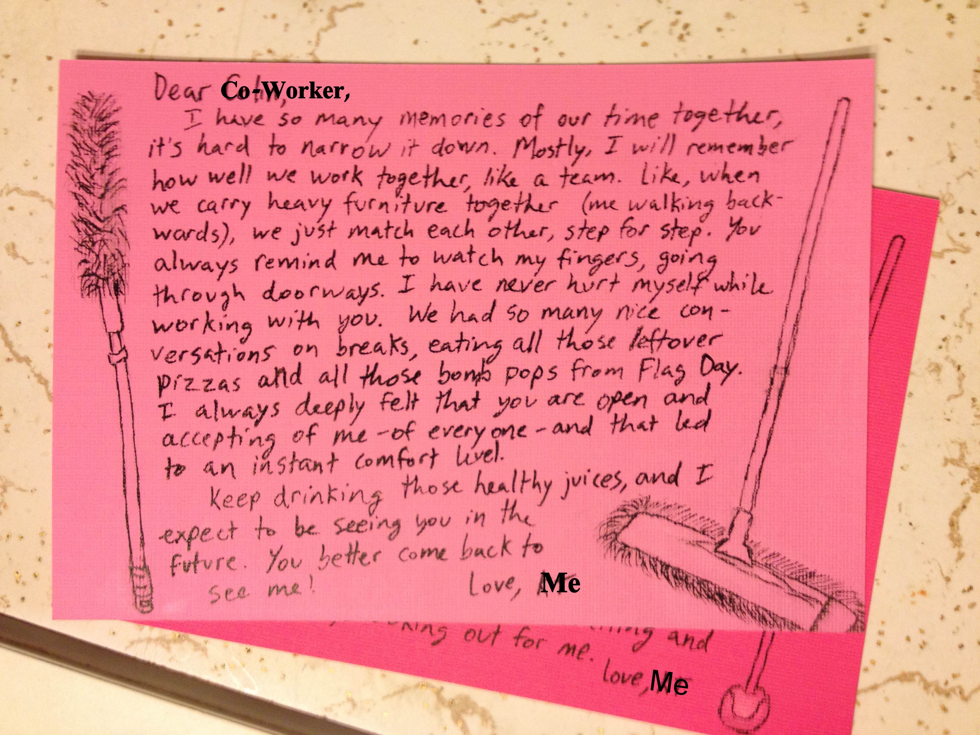 Saying goodbye to my co-worker / ally